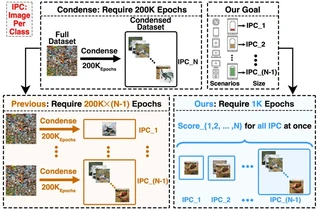 Dataset condensation is a crucial tool for enhancing training efficiency by reducing the size of the training dataset, particularly in on-device scenarios. However, these scenarios have two significant challenges: 1) the varying computational resources available on the devices require a dataset size different from the pre-defined condensed dataset, and 2) the limited computational resources often preclude the possibility of conducting additional condensation processes. We introduce You Only Condense Once (YOCO) to overcome these limitations. YOCO offers two key advantages: 1) it can flexibly resize the dataset based on two discovered rules, Low LBPE Score and Balanced Construction, to fit varying computational constraints, and 2) it eliminates the need for extra condensation processes, which can be computationally prohibitive. Experiments validate our findings on networks including ConvNet, ResNet and DenseNet, and datasets including CIFAR-10, CIFAR-100 and ImageNet. For example, our YOCO surpassed various dataset condensation and dataset pruning methods on CIFAR-10 with ten Images Per Class (IPC), achieving 6.95-9.91% and 6.57-24.33% accuracy gains, respectively.